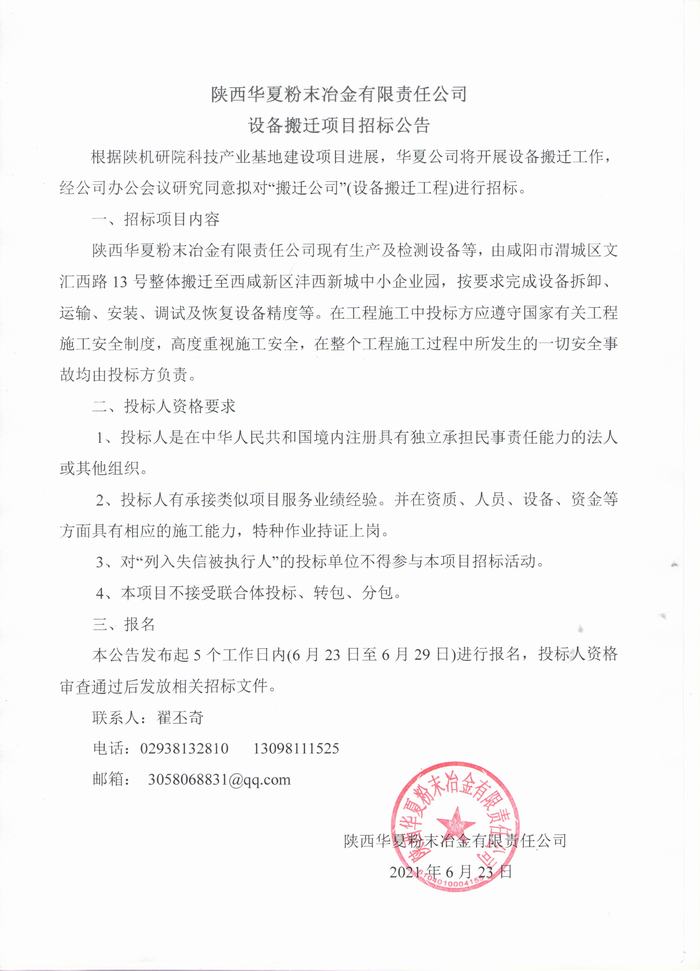 設備搬遷項目招標公告