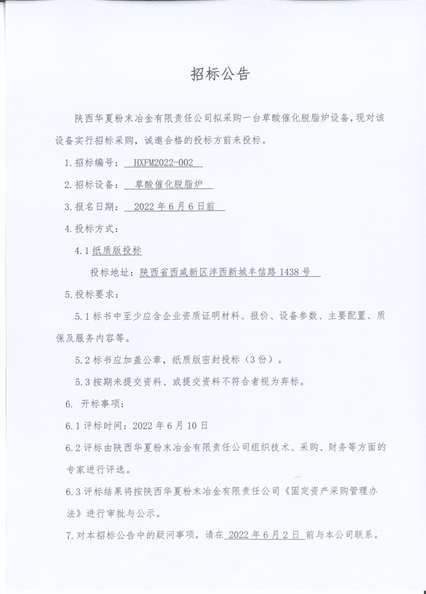 真空燒結(jié)設(shè)備招標(biāo)