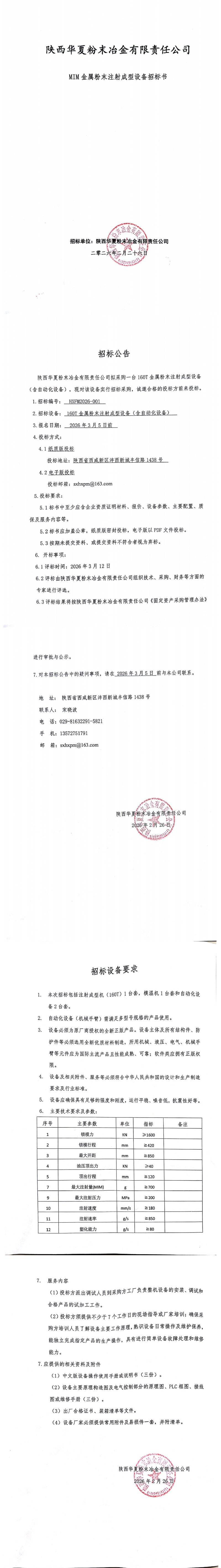 MIM金屬粉末注射成型設(shè)備招標書